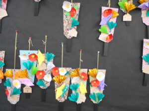 今月のお持ち帰り”羽子板”にお願いごとの絵馬を付けて…